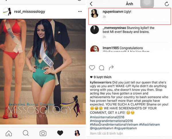 Vào thời điểm cuối năm 2016, khi người đẹp Philippines - Kylie Verzosac đăng quang ngôi vị "Hoa hậu Quốc tế", trên chuyên trang sắc đẹp Missology có đăng tải loạt hình ảnh về tân Hoa hậu và phía dưới mỗi bức ảnh đều ghi nhận nhiều ý kiến bình luận của mọi người.