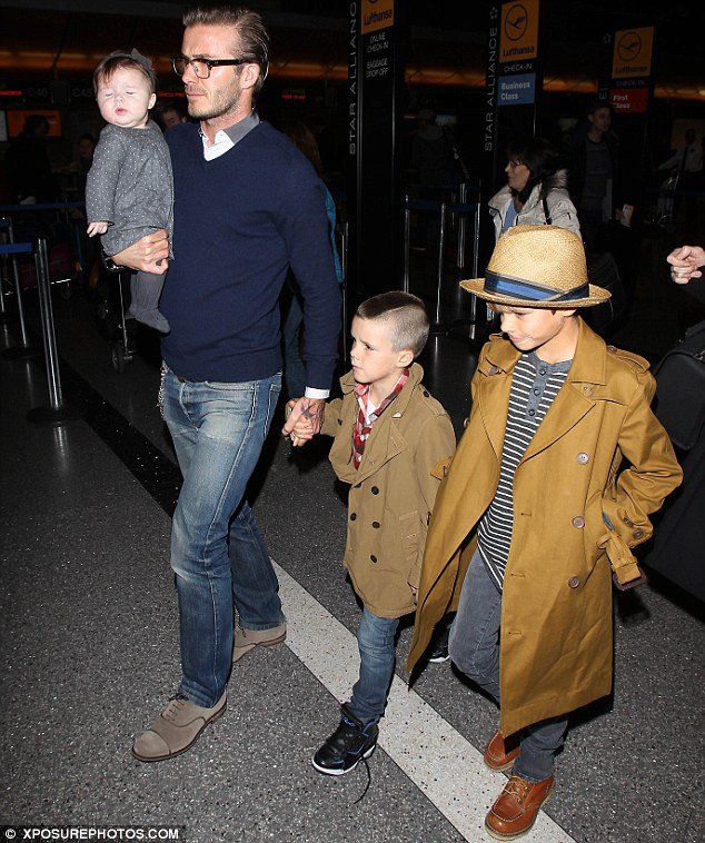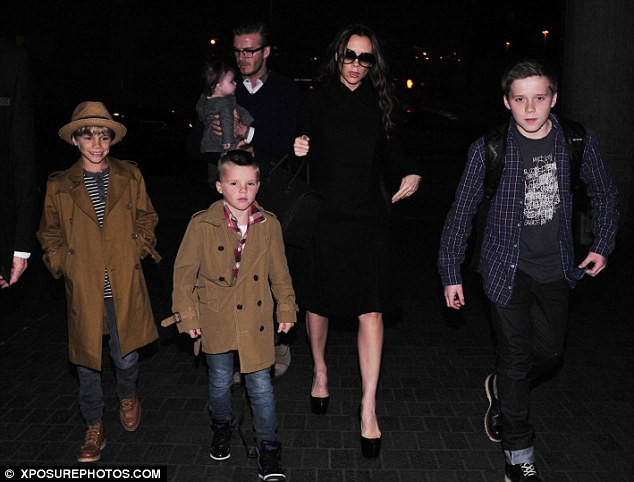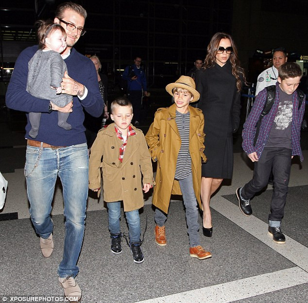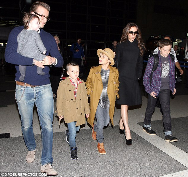 Bắt gặp tại sân bay Los Angeles, Victoria và Beckham đã cùng 3 cậu con trai Brooklyn , Romeo, Cruz và cô con gái bé bỏng Harper cùng trở về Anh nhân dịp lễ Giáng Sinh. Cựu thành viên nhóm nhạc Spice Girl, Victoria diện một váy đen phong cách và lịch thiệp. Trong đó, Romeo, 9 tuổi cà Cruz, 6 tuổi chọn cho mình chiếc áo khoác dài phong cách. Cậu con trai cả Brooklyn nổi bật với phong cách thể thao khỏe khoắn. Trong khi Beckham giản dị với áo len kết hợp quần jeans, và luôn bế cô con gái bé bỏng Harper trên tay.