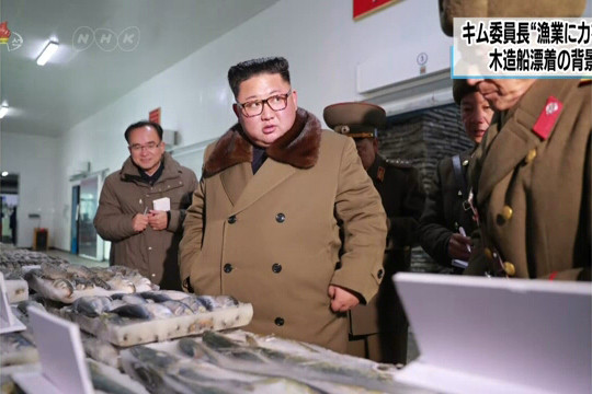 Đài truyền hình Trung ương Triều Tiên phát đi hình ảnh ông Kim lên một tàu cá neo ở cảng và đưa ra chỉ thị cho các quan chức quân đội.