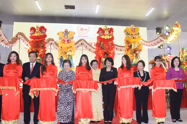Phó Chủ tịch nước Đặng Thị Ngọc Thịnh cùng các nguyên Phó Chú tịch nước và lãnh đạo TP Hà Nội cắt băng khánh thành Nhà máy xử lý trứng gia cầm công nghệ cao tại Phúc Thọ, Hà Nội