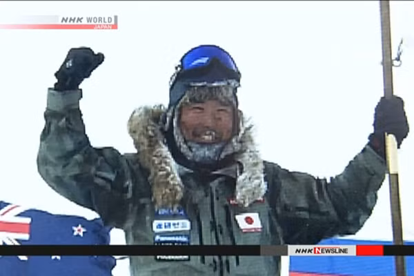 Ông gửi một bức ảnh mình giương lá cờ của Nhật Bản trước cột mốc ở Nam cực, và một bức ảnh khác cho thấy địa điểm của ông trên màn hình hệ thống định vị toàn cầu (GPS).