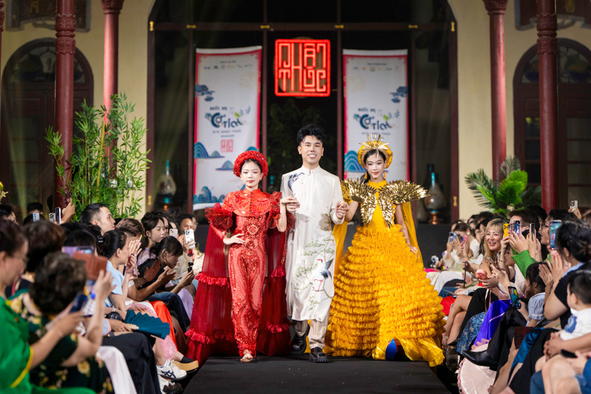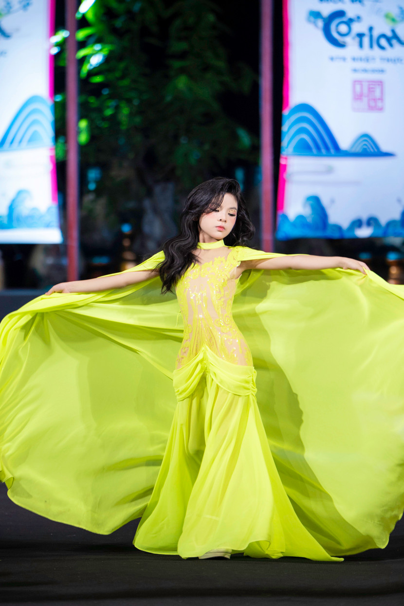 Trong khi đó, "Cổ tích tái sinh" lại là lời kể lại câu chuyện Tấm Cám bằng thời trang – nơi những hình ảnh như chim vàng anh, cây xoan đào, khung cửi hay quả thị được chuyển thể thành các chi tiết thiết kế giàu biểu tượng. Chất liệu ánh kim, lông vũ, các đường cong mềm mại tạo nên nét kiêu sa, thuần khiết như một bản giao hưởng về niềm tin, công lý và sự hồi sinh của cái thiện. Đây là bộ sưu tập tôn vinh vẻ đẹp trong sáng, tinh thần vượt khó và lòng nhân hậu – những phẩm chất đẹp nhất của người Việt.
