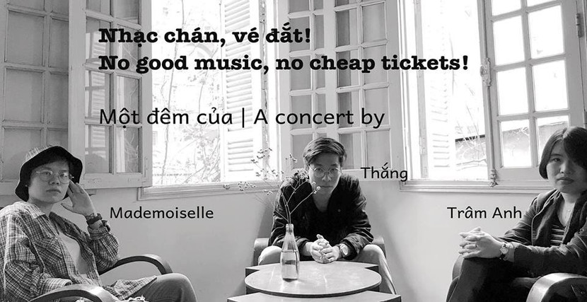 ANTD.VN - Với sự góp mặt của 3 nghệ sỹ tên tuổi của dòng nhạc Indie Việt như Vũ Đinh Trọng Thắng (Ngọt), Trâm Anh và Mademoiselle, chương trình "Nhạc chán, vé đắt" sẽ diễn ra vào 20h ngày 30-3-2018 tại Manzi art space, số 14 Phan Huy Ích, Hà Nội.