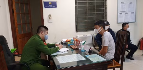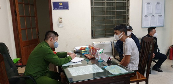 Lực lượng chức năng lập biên bản và yêu cầu các trường hợp ra ngoài công cộng phải đeo khẩu trang phòng, chống dịch Covid-19