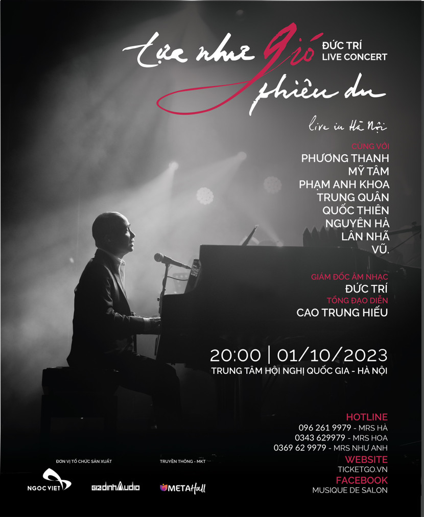 Ngay khi công bố, live-concert của nhạc sĩ Đức Trí – “Tựa như gió phiêu du”, nhận được sự quan tâm đặc biệt từ công chúng. Đêm nhạc được tổ chức vào tối 1-10-2023 tại Trung tâm Hội nghị Quốc gia, Hà Nội, đúng vào dịp kỷ niệm sinh nhật của anh. Chương trình quy tụ nhiều giọng ca tên tuổi như: Phương Thanh, Mỹ Tâm, Nguyên Hà, Lân Nhã, Phạm Anh Khoa, Quốc Thiên... Mới đây, chủ nhân của live-concert này đã chính thức công bố cái tên “chốt sổ” dàn nghệ sĩ tham gia đêm nhạc, đó chính là Vũ.