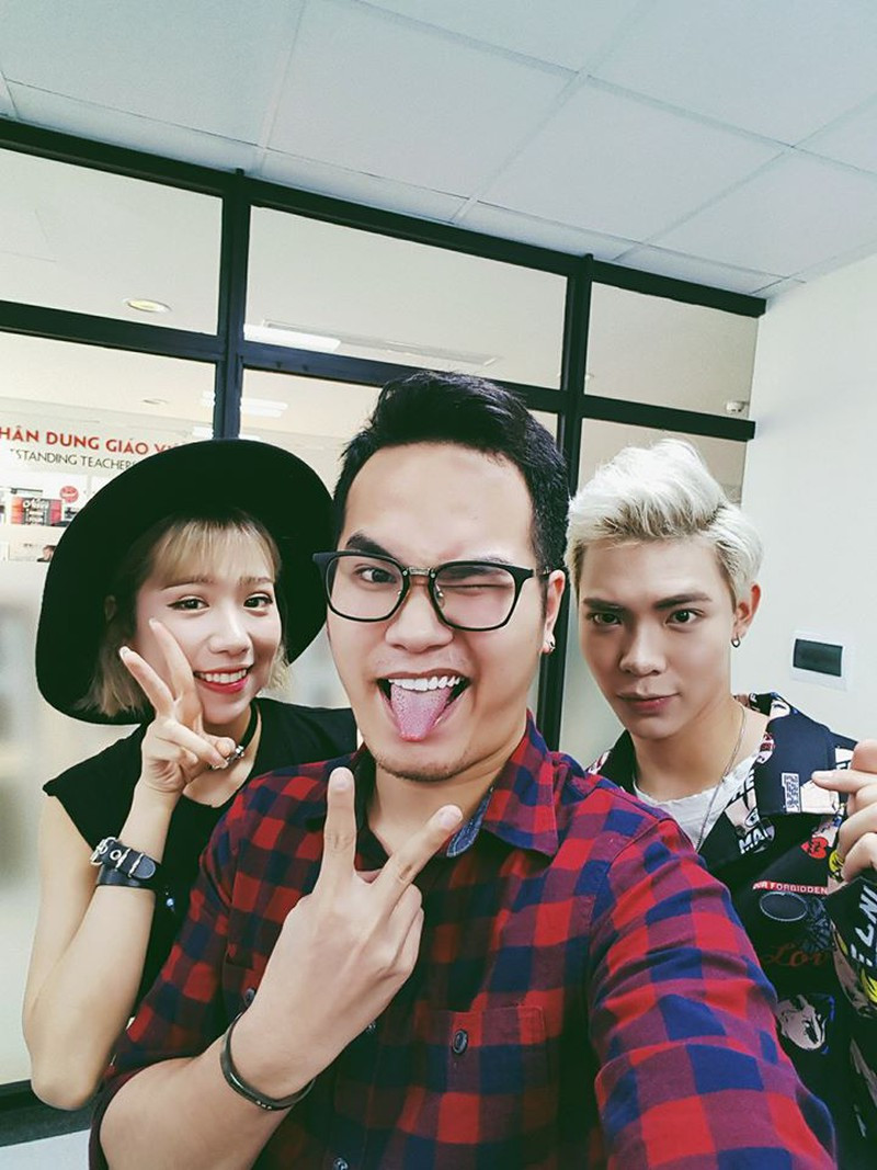 Khắc Hưng (giữa) cùng hai ca sĩ thể hiện ca khúc "Ghen Cô Vy" - Min và Erik