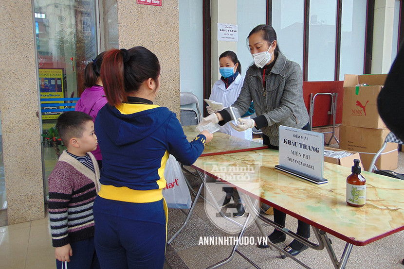 Vào 9h ngày 2-2, Báo An ninh Thủ đô phối hợp cùng nhóm thiện nguyện Hoa Cúc Xanh và các đoàn viên CATP Hà Nội đã phát khẩu trang y tế miễn phí cho người dân tại 2 điểm Ga Hà Nội (quận Đống Đa) và số 50 phố Đặng Thai Mai (quận Tây Hồ).