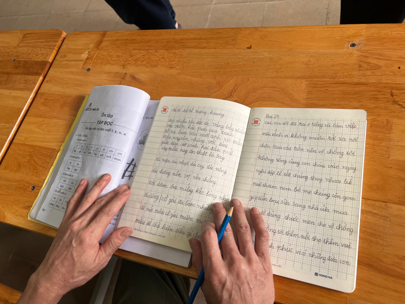 Sau nhịp gõ thước kẻ là văng vẳng tiếng đọc “ê...a” của những chất giọng khàn đặc. Âm thanh đó phát ra từ lớp học đặc biệt có tên “Lớp học xóa mù chữ năm 2023” của Cơ sở cai nghiện ma túy số 7 Hà Nội. Từng gương mặt căng ra, những bàn tay run run trên trang giấy. Những đôi bàn tay uốn từng nét chữ, dấu móc, dấu ngoặc nên họ lóng ngóng như trẻ con tiểu học. Anh N.V.T (45 tuổi, trú ở quận Hà Đông, Hà Nội) là một trong những học sinh tiêu biểu của lớp. Tiếp thu nhanh, thậm chí anh còn hỗ trợ và giúp các bạn cùng lớp hiểu bài.