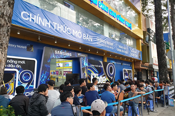 Trước đó gần một tuần, một trong số những sự kiện công nghệ nổi bật nhất chính là việc hàng trăm người xếp hàng trước siêu thị VinPro và cửa hàng Viễn thông A để mua Samsung Galaxy Note9. Cảnh tượng hiếm gặp trong thời điểm “tháng ngâu” này đến từ gói ưu đãi hấp dẫn chỉ có tại các cửa hàng này, gồm: Voucher nghỉ dưỡng tại hệ thống khách sạn 5 sao Vinpearl, bộ quà tặng công nghệ lên tới 5 triệu đồng và cơ hội nâng cấp miễn phí lên bản 512GB.