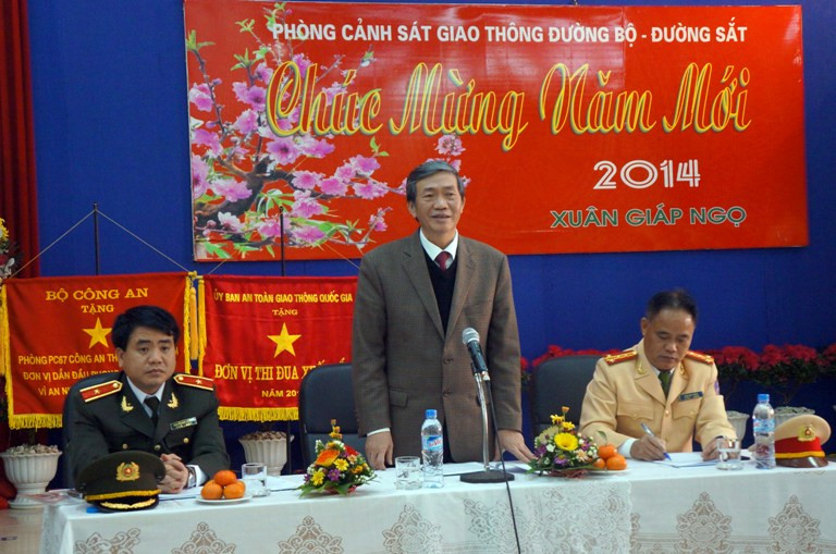 Đại tá Đào Vịnh Thắng – Trưởng phòng CSGT đường bộ-đường sắt đã báo cáo với đồng chí Đinh Thế Huynh những kết quả trong năm công tác 2013. Theo đó, Phòng CSGT đã đẩy mạnh tuyên truyền, đa dạng hóa các hình thức tuyên truyền và đã đạt được những kết quả to lớn. Hệ thống loa tuyên truyền được lắp đặt tại các nút ngã tư, giao thông trọng điểm đã phát huy tích cực, giúp cho đông đảo người dân tham gia giao thông hiểu và chấp hành luật giao thông.