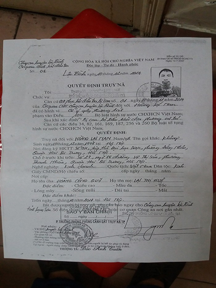 Quyết định truy nã Nam"ngọ" của CAH Lộc Bình, tỉnh Lạng Sơn