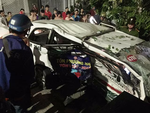 Lực tông mạnh đã tạo ra tiếng động chát chúa làm phá tan không khí yên tĩnh lúc nữa đêm. Sau va chạm, chiếc taxi lộn nhiều vòng rồi va vào bức tường cách đó khoảng 10m mới dừng lại.