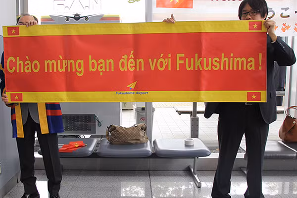 Biểu ngữ chào đón du khách bằng tiếng Việt tại sân bay Fukushima