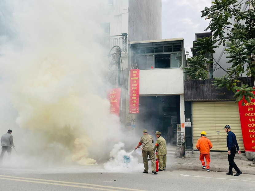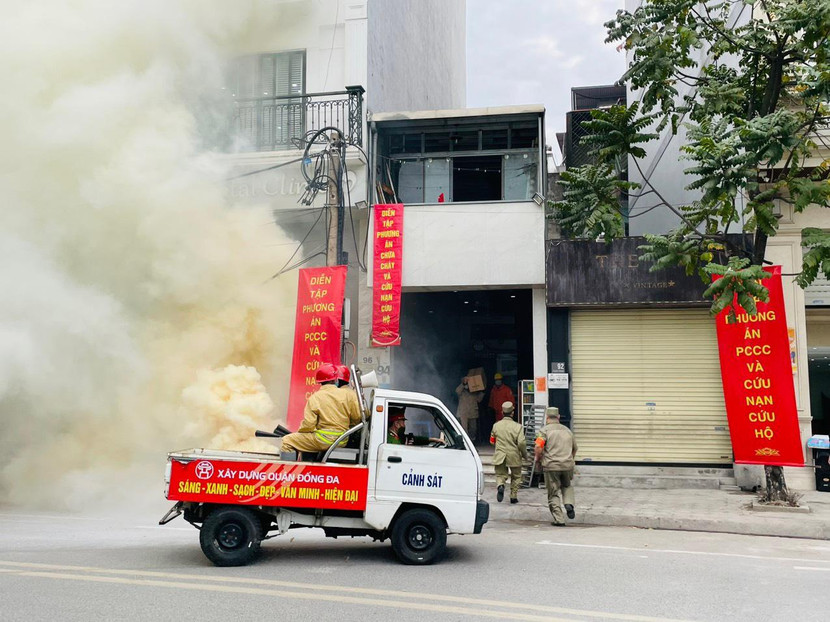Sau buổi tuyên truyền các lực lượng và người dân đã tham gia diễn tập xử lý đám cháy giả định xảy cháy tại hộ gia đình kết hợp sản xuất kinh doanh ở phường Trung Phụng.