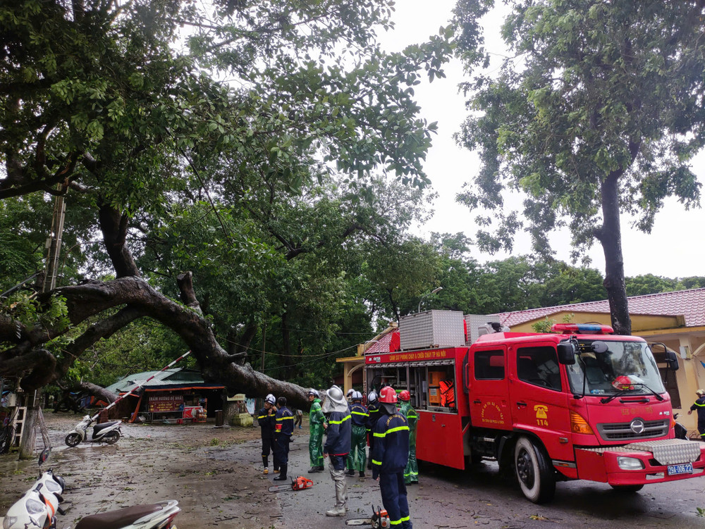 Cảnh sát PCCC và CNCH gồng mình xử lý cây đổ trong mưa bão