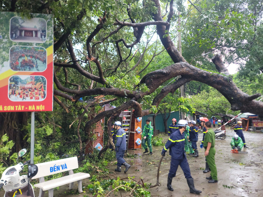 Nhanh chóng di dời cây cổ thụ đổ rạp vào Đền Và Sơn Tây
