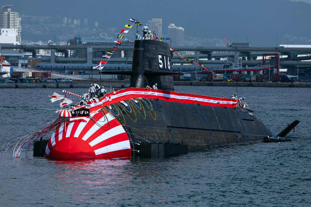 ANTD.VN - Hải quân Nhật Bản đã tổ chức lễ tiếp nhận tàu ngầm lớp Taigei thứ 4 vào biên chế hạm đội, con tàu có tên JS Raigei với số hiệu 516.