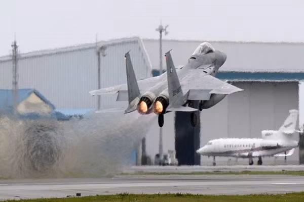 Một chiến đấu cơ F-15 của Nhật Bản cất cánh từ căn cứ ở Naha, Okinawa