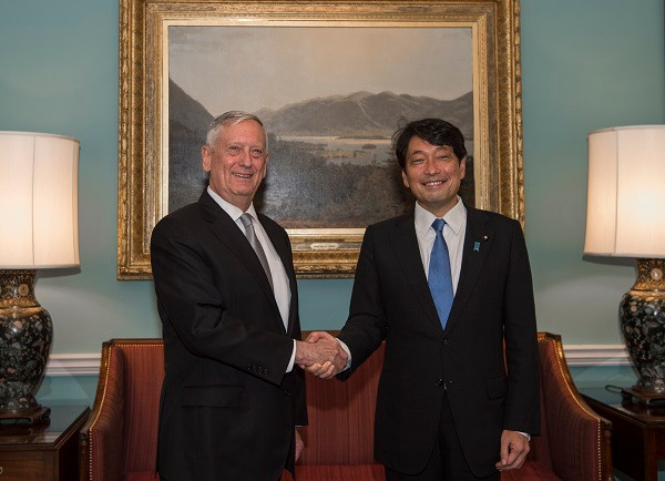 Bộ trưởng Quốc phòng Mỹ James Mattis bắt tay người đồng cấp Nhật Bản Itsunori Onodera