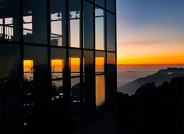 Ngay dưới chân cột cờ trên đỉnh Fansipan có một quán cà phê sân mây nhỏ xinh với khung cửa kính chạm trần chan hoà ánh nắng, ôm trọn cảnh sắc núi non hùng vĩ. Nơi đây thời gian như dừng lại với mùi cà phê thơm nồng và cảm giác an yên, ấm áp khi được tựa vai nhau trò chuyện, ngắm mây dịu dàng trôi bên cửa sổ.