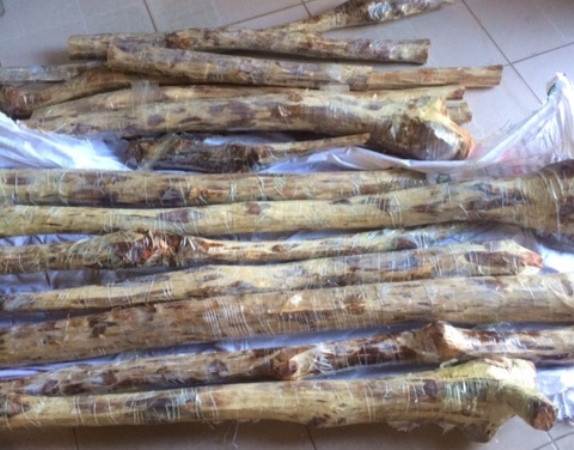 Tiếp tục kiểm tra xe ô tô, CSGT phát hiện 15 khúc gỗ được bọc trong bao tải dứa. Số gỗ này lái xe khai là gỗ sưa và được hai mẹ con đi mua mang về nhà để sơ chế làm các sản phẩm về gỗ. Lái xe không xuất trình được bất kỳ giấy tờ, hóa đơn chứng minh nguồn gốc, xuất sứ số gỗ sưa này. Tổng số gỗ sưa được xác định có trọng lượng 65kg.