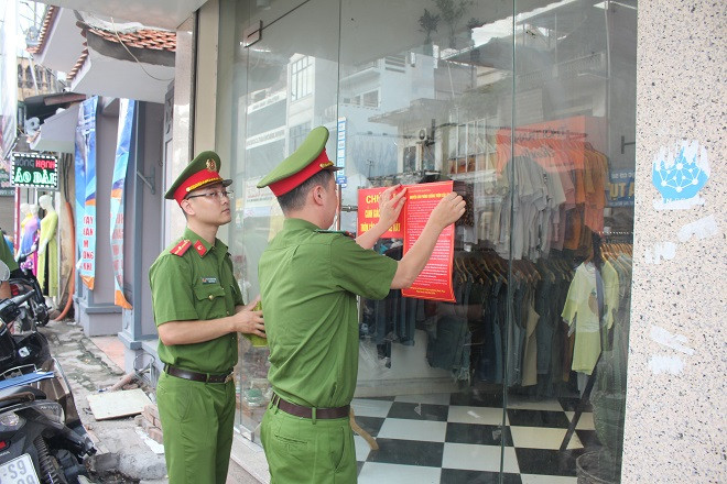CBCS - CAP Bạch Mai dán khuyến cáo phòng ngừa trộm cắp tài sản tại trước các cửa hàng kinh doanh