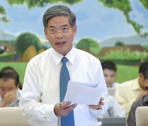 Bộ trưởng Bộ TN-MT Nguyễn Minh Quang trình bày báo cáo sáng nay, 27-8