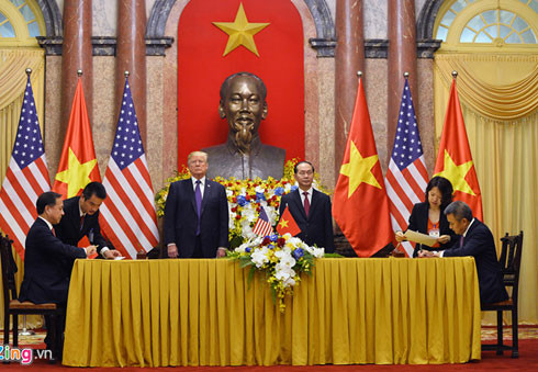 Nhiều hợp đồng trị giá lớn đã được ký kết nhân chuyến thăm của Tổng thống Mỹ Donald Trump đến Hà Nội. Ảnh: Hoàng Hà.