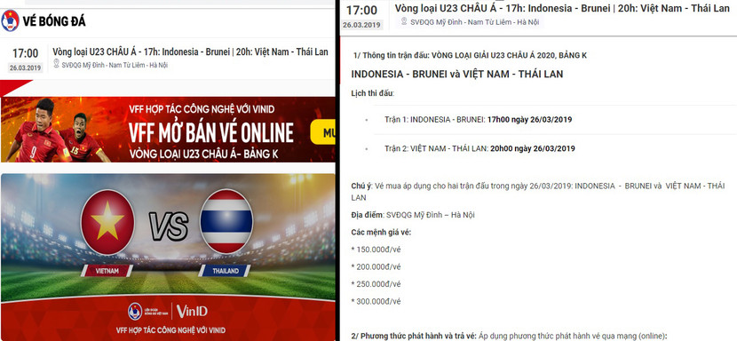 So với AFF Cup 2018, các trận đấu của U23 Việt Nam ở vòng loại U23 châu Á không "hot" bằng, vì vậy việc mua vé online dễ dàng hơn. Ban tổ chức cũng tiến hành mở bán một loạt, thay vì phải chia nhỏ thành các đợt khác nhau như trước.