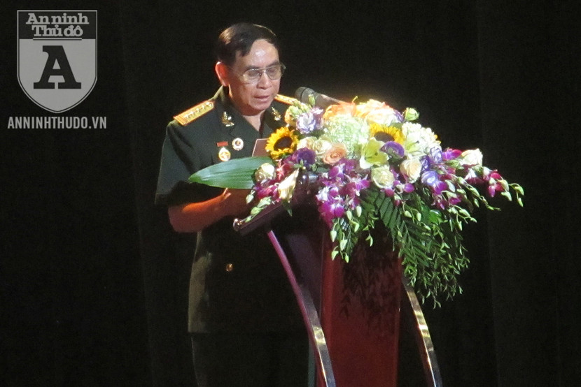 Đại tá Trần Đình Đích - Tổng Biên tập Tạp chí Điện tử Da cam - phát biểu tại buổi lễ tri ân