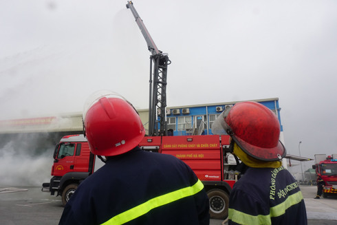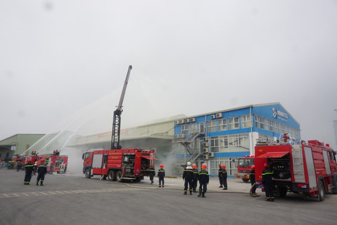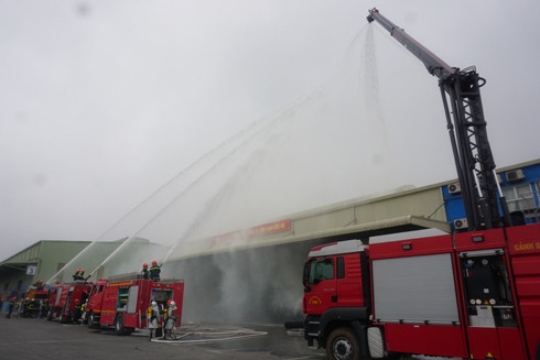 ANTD.VN - Nhận thức rõ vai trò của người đứng đầu cơ sở, cơ quan, tổ chức và lực lượng PCCC cơ sở đối với công tác an toàn PCCC, lực lượng Cảnh sát PCCC số 7 đã phối hợp với UBND huyện Thanh Trì, Bộ chỉ huy quân sự, CAH Thanh Trì thực tập phương án chữa cháy, cứu nạn tại Trung tâm tiếp vận Thanh Trì - Vinafco.