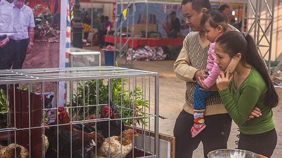 Hội chợ còn bày bán các mặt hàng gia súc, gia cầm phong phú như lợn rừng lai, chim trĩ đỏ, chim trĩ xanh,... Ngoài ra còn có mặt hàng gà Đông Tảo đến từ Hưng Yên đã từng rất hút khách năm ngoái. Một cặp gà giống có giá khoảng 10 triệu đồng (giảm so với hội chợ năm 2013, với giá là 11 triệu đồng).