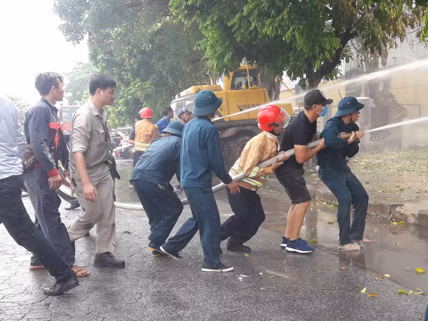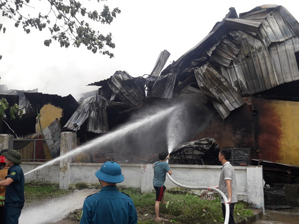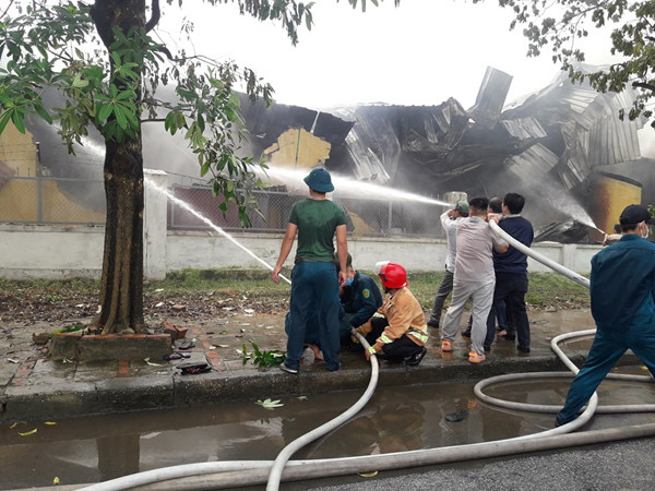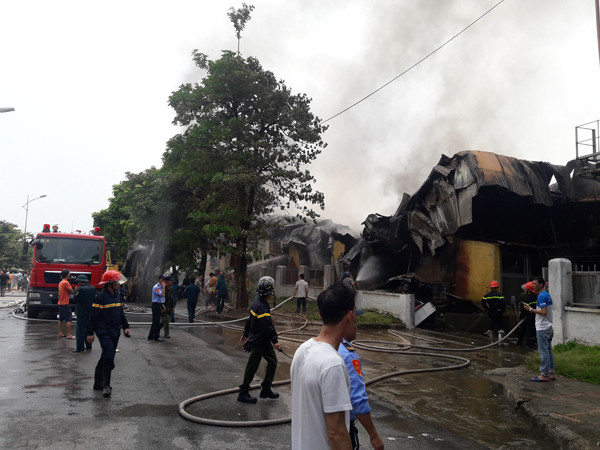Cũng theo chỉ huy lực lượng chữa cháy tại hiện trường, chất cháy chủ yếu là đồ nhựa nên khói đen đặc và gây khó khăn cho việc dập lửa. Do vậy, các phương tiện chữa cháy đã tiếp cận từ nhiều phía, phun vòi rồng khống chế đám cháy.