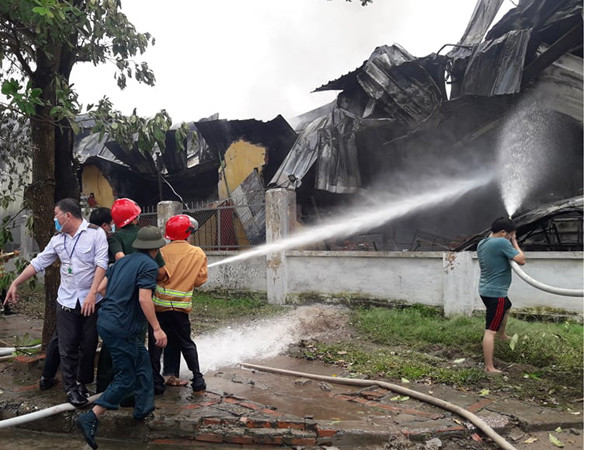 Lực lượng chữa cháy tại chỗ đã nhanh chóng phối hợp với lực lượng chữa cháy chuyên nghiệp khống chế lửa, ngăn cháy lan nhưng phải gần 2 tiếng mới dập tắt