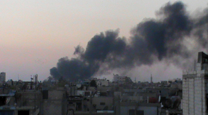 Khói bốc lên sau cuộc không kích vào khu vực Hama