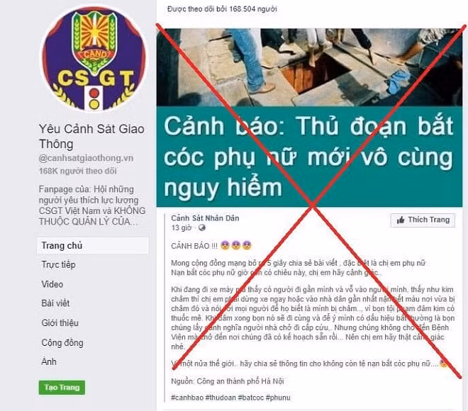 Gần đây, 2 trang fanpage “Yêu Cảnh Sát Giao Thông” và “Công An Nhân Dân” có đăng tải các bài viết “Cảnh báo: Thủ đoạn bắt cóc phụ nữ mới vô cùng nguy hiểm” và bài viết “Thủ đoạn bắt cóc trẻ em ở quận Ba Đình”. Công an thành phố Hà Nội khẳng định những nội dung thông tin như bài viết trên là không chính xác, sai sự thật, gây hoang mang dư luận và không do Công an thành phố đăng tải.