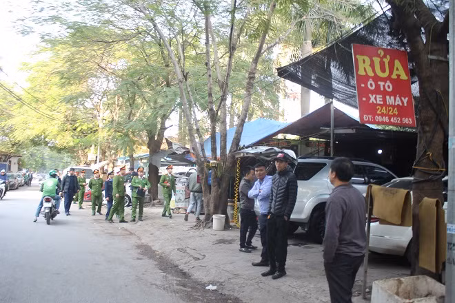 Đoàn công tác đã tiến hành kiểm tra tại ngõ 15, phố Duy Tân, phường Dịch Vọng Hậu, quận Cầu Giấy. Tại thời điểm kiểm tra, lực lượng chức năng phát hiện khu vực dự án cống hóa mương Đồng Bông đã xảy ra việc tự ý cho thuê lều lán làm bãi trông giữ, điểm rửa xe, lấn chiếm lòng, lề đường; gây mất trật tự đô thị, không bảo đảm các quy định về vệ sinh môi trường, an toàn phòng cháy chữa cháy...