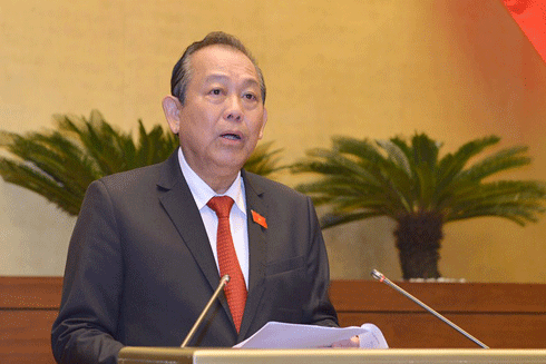 Phó Thủ tướng Thường trực Chính phủ Trương Hòa Bình trình bày báo cáo tổng hợp kết quả thực hiện các Nghị quyết của Quốc hội về giám sát chuyên đề và chất vấn