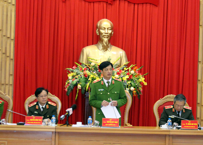 Thiếu tướng Nguyễn Duy Ngọc - Cục trưởng Cục CSĐTTP về tham nhũng, kinh tế, buôn lậu phát biểu khai mạc hội nghị