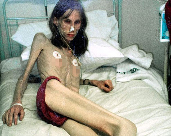 Helen Gillespie, 30 tuổi đến từ thành phố Perth, miền trung Scotland bắt đầu ăn kiêng khi mới 10 tuổi. Lý do là cô sợ mình sẽ lớn lên. Tuy nhiên hậu quả của việc nhịn ăn này là ngực cô gái không bao giờ phát triển và lần đầu cô dậy thì là khi đã bước sang tuổi 26. Ngoài ra, chứng rối loạn ăn uống đã khiến Helen bị chứng giãn tĩnh mạch và xương dễ vỡ như một bà cụ 70.