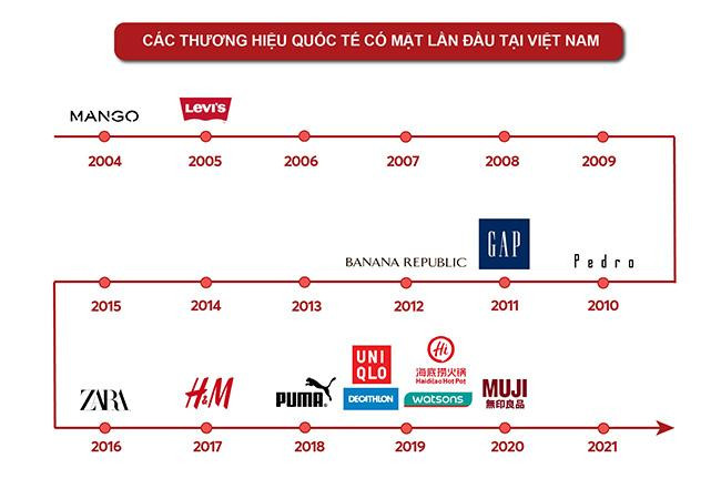Sau thành công của Zara, năm 2017, thị trường bán lẻ Việt Nam tiếp tục dậy sóng khi H&M mở cửa hàng đầu tiên tại TP. Hồ Chí Minh rộng tới 2.200m2 - cửa hàng thời trang quy mô nhất tại thời điểm đó. Bước đi của H&M chứng minh tiềm năng của thị trường Việt Nam, tạo cơn bão khai trương cho hàng loạt thương hiệu quốc tế trong những năm tiếp theo. Năm 2019, Decathlon – thương hiệu thể thao của Pháp mở cửa hàng trải nghiệm đầu tiên tại Hà Nội hay Watsons - chuỗi bán lẻ mỹ phẩm châu Á tại trung tâm TP. HCM.