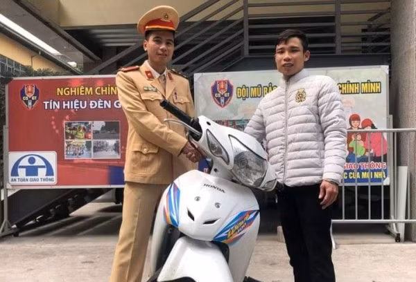 Kiểm tra trong hồ sơ dữ liệu xe máy, CSGT xác định chiếc xe là tang vật của một vụ trộm cắp trước đó ít ngày. Chủ nhân của chiếc xe trên là anh Hoàng Anh Nam. Tổ công tác đã mời anh Nam lên Đội Tuần tra dẫn đoàn để nhận lại tài sản.
