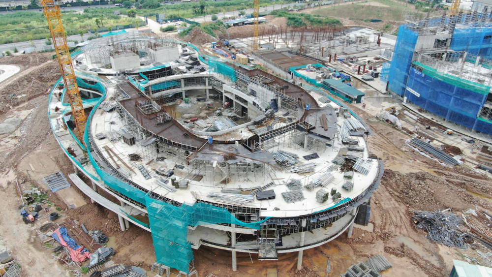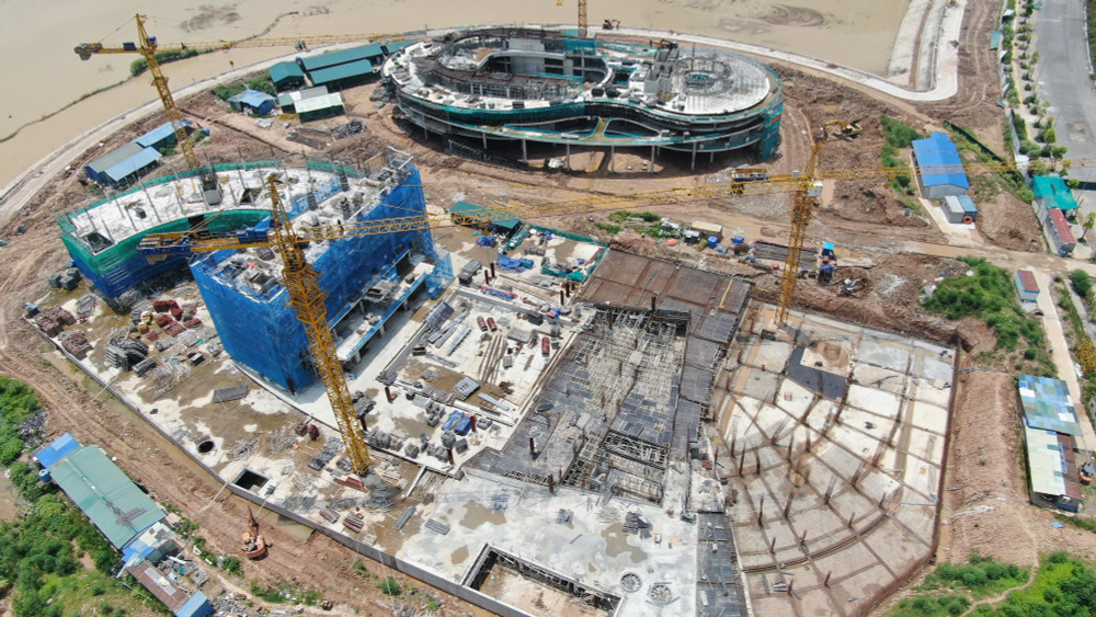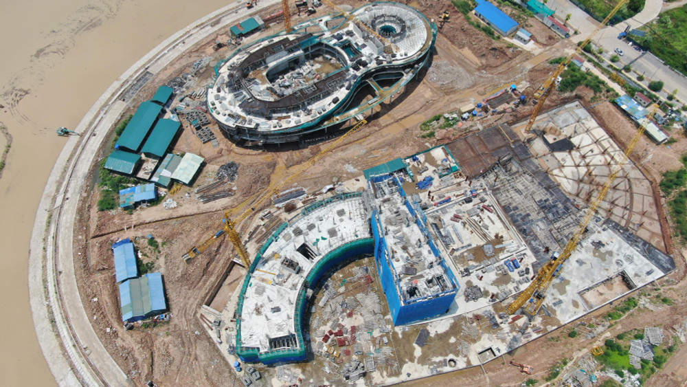 ANTD.VN - Sau 9 tháng thi công, nhìn từ flycam dự án Cung Thiếu nhi mới của TP Hà Nội tại khu đô thị mới Cầu Giấy đang hiện rõ hình hài công trình hiện đại, là điểm nhấn kiến trúc trong khu vực.