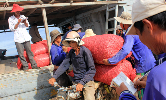 Những túm hành tươi chờ được chuyển đi tiêu thụ tại nhiều tỉnh thành