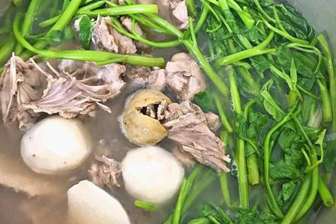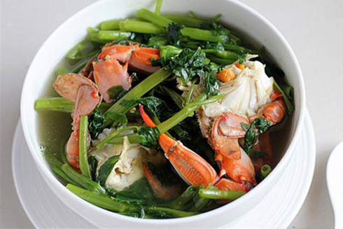 Món ăn gây thương nhớ như canh cua nấu khoai sọ kèm rau rút mà có thêm chút rau muống vào mới gọi là hoàn hảo. Dân miền biển thì không ai là không biết món cua, ghẹ nấu rau muống. Thay vì luộc rồi đổ nước luộc ghẹ đi, người ta nấu cùng rau muống, vừa tiết kiệm lại vừa có món canh ngon. Rau muống nấu ghẹ ngon, ngọt, không hiểu là 2 thứ đó hợp nhau, bổ sung, hỗ trợ cho món ăn xuất sắc, hay là cái nước luộc ghẹ ấy nó đã ngọt sẵn rồi, thành ra bỏ rau gì vào cũng ngon. Ấy thế nhưng, sao người ra không bỏ rau khoai lang, rau ngót… mà lại cứ nhất định là rau muống? Món này ăn nóng nên thích hợp lúc tiết trời trở lạnh. Nguyên liệu cần 1 mớ rau muống, 1-2 hay là 3 con ghẹ thì tùy từng gia đình. Ghẹ làm sạch, phi thơm chút hành tím băm nhỏ rồi cho ghẹ vào xào, thêm nước vừa ăn, ghẹ sôi liu riu đủ để chín thì cho rau muống vào nấu. Rau muống trước khi nấu thì rửa sạch rồi vò nhẹ, như thế rau sẽ mềm hơn và ngấm nước ghẹ hơn. Nếu chưa ăn, bạn có thể thử, tin chắc là ăn xong thì không hối hận đâu.