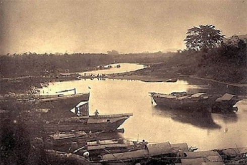 Sông Tô Lịch xưa dài 30km và là giao thông đường thủy quan trọng từ phía Đông Nam vào thành Thăng Long (Trong ảnh: Sông Tô Lịch năm 1885)