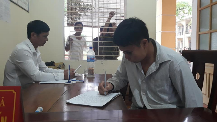 Đối tượng khai báo tại cơ quan công an (ảnh: ĐXTS)