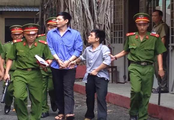 Hai bị cáo bị áp giải về trại giam sau khi tòa tuyên xong bản án