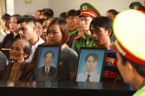 Người nhà nạn nhân mang di ảnh của bị hại đến tham dự phiên tòa.