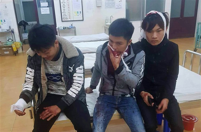 Cụ thể, anh Thanh bị chém gần đứt lìa cánh tay phải. Các anh Vũ Đức Huỳnh và Vũ Đức Anh bị chém trọng thương ở đầu và mặt. 3 thanh niên còn lại bị thương nhẹ ở tay, chân...